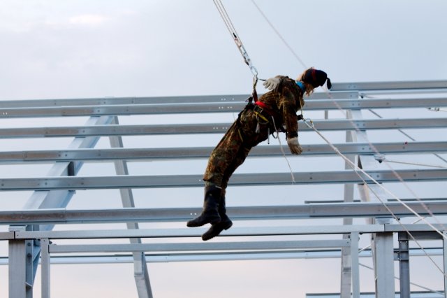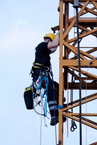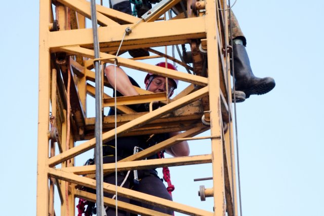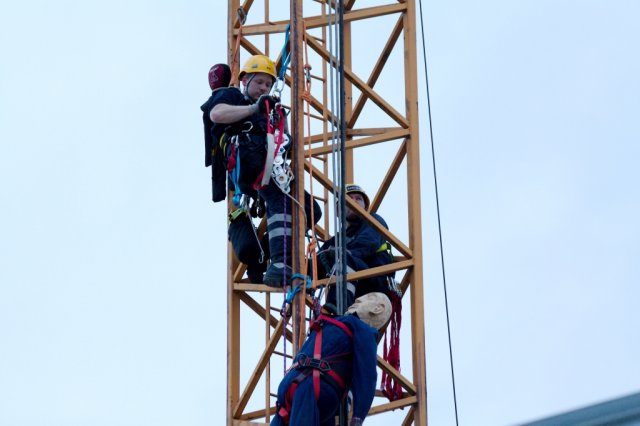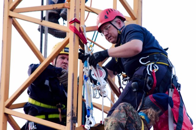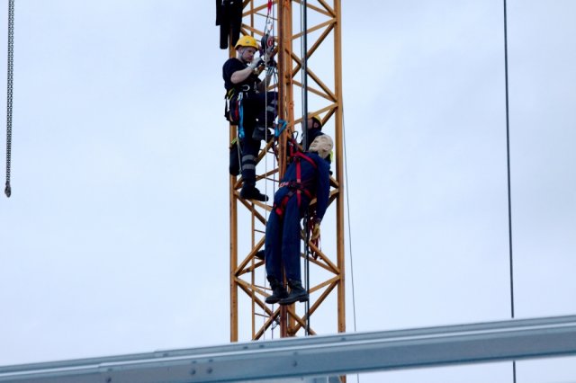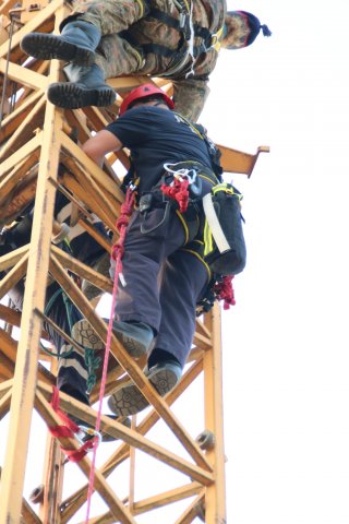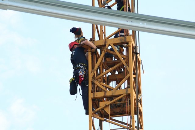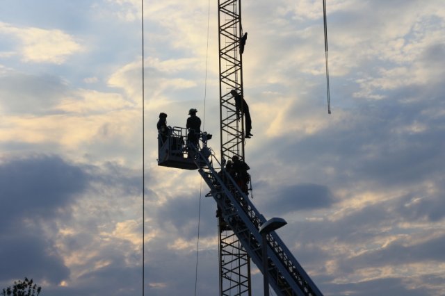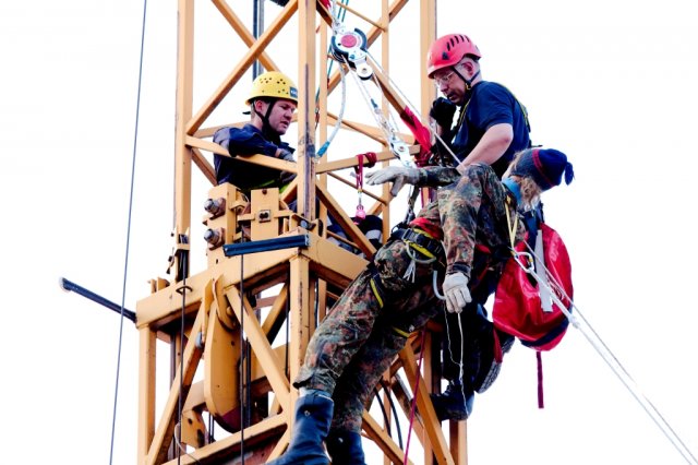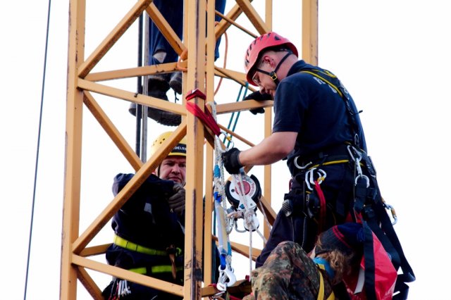 Zu Übungszwecken wurden drei Puppen in verschiedenen Höhen am Kran „eingehängt“. Ziel war es diese Puppen aus ihre Lage zu befreien und zu retten.