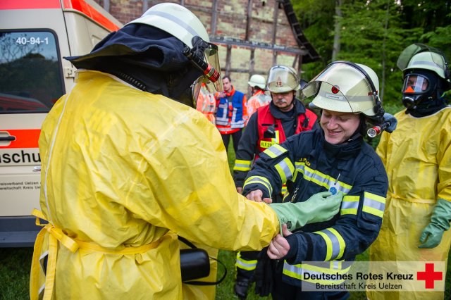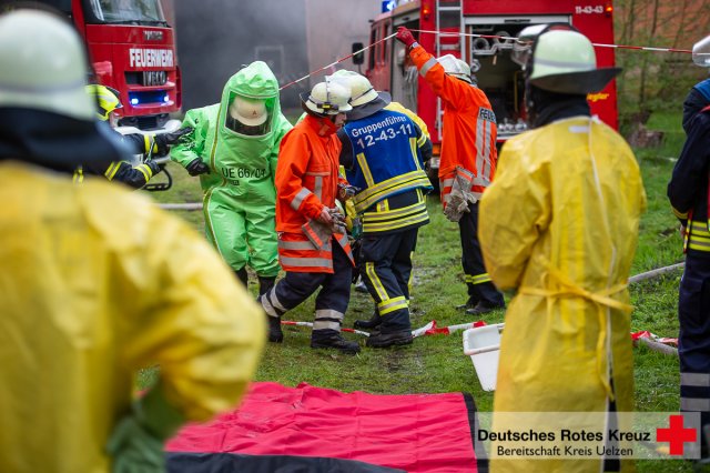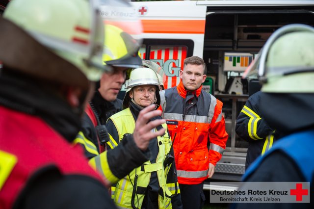 Im Mittelpunkt der knapp zweistündigen Übung stand unter anderem die Kommunikation aller beteiligter Einsatzkräfte über Funkgeräte und einem eigens ausgearbeiteten Funkkonzept, welches im Jahr 2016 im Kreis Uelzen eingeführt worden war, und der Zusammenarbeit zwischen den Zügen der Feuerwehr und dem DRK.
