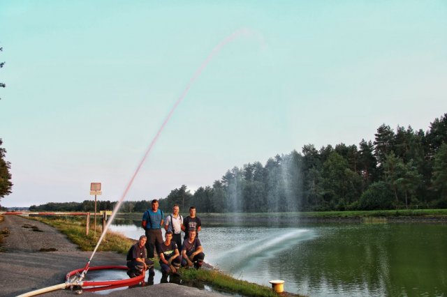 Jeder Teilnehmer sollte das Ansaugen und der Wasserabgabe mit der TS einmal durchführen. Für die Wasserabgabe wurde ein Wasserwerfer aus einem Verteiler, B-Schlauch, Stützkrümmer und B-Strahlrohr hergerichtet. Vieles wurde dabei ausprobiert wie zum Beispiel der Tausch des B-Strahlrohres mit einem D-Strahlrohr. Es war ein Dienst mit viel Spaß und vielen Erkenntnissen die vor Ort noch besprochen worden sind.