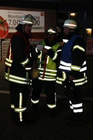 Ein besonderer Dank gilt den Mitarbeitern des Verbrauchermarktes. Durch ihr umsichtiges und richtiges Handeln wurde der Supermarkt noch vor dem Eintreffen der Feuerwehr geräumt und es stand immer ein Ansprechpartner für den Einsatzleiter zur Verfügung. Die Übung wurde im Vorfelde nur in einem ganz engen Kreis zwischen der Leitung des Marktes und der Übungsleitung der Feuerwehr besprochen. Bedanken möchten wir uns auch bei den Kunden, die zum Zeitpunkt der Alarmierung im Markt beim Einkaufen waren und das Gebäude ohne Waren verlassen mussten. Sie konnten ihren Einkauf aber nach Abschluss der Übung dann fortsetzen.