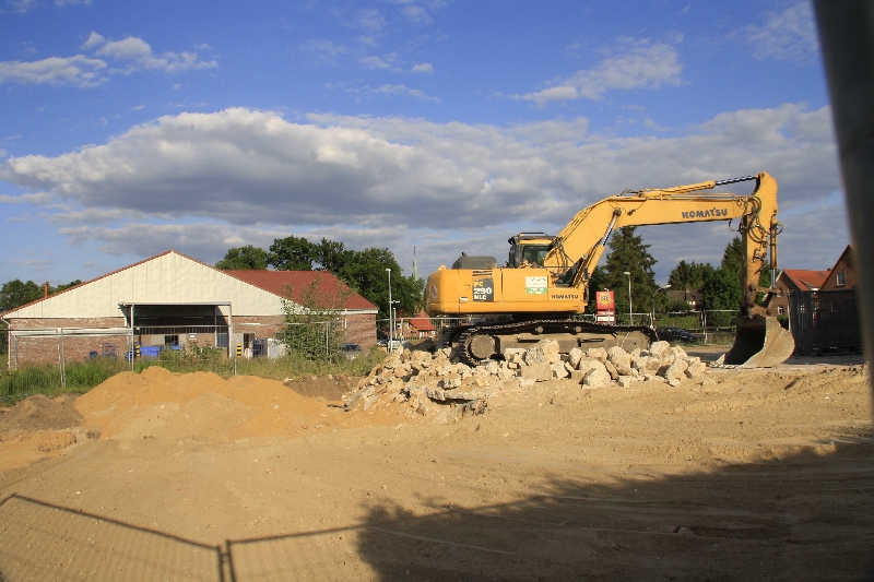 Das alte Feuerwehrhaus ist abgerissen und mit dem Neubau wurde begonnen. Zunächst stehen umfangreiche Erdarbeiten auf den Programm. Das Grundstück zwischen dem alten Feuerwehrhausgrundstück und dem neuen NP Markt muss auf das Niveau des bisherigen Feuerwehrhauses gebracht werden.