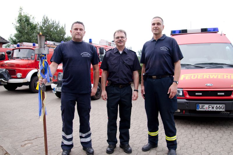 In Form einer Fackelstaffel wurde diese Flamme an alle Vereine der Gemeinde weitergereicht. Am Donnerstag war nun die Feuerwehr an der Reihe, die Fackel gebührend in Empfang zu nehmen. Im Rahmen einer kleinen Feierlichkeit wurde die Fackel vom Vorsitzenden des Hundesportvereins Herr Wolf an den Ortsbrandmeister der FF Wriedel – Schatensen übergeben. Viele Gäste aus den anderen Vereinen hatte sich zu diesem kleinen Festakt eingefunden und feierten im Anschluss, bei gutem Wetter, gemeinsam mit der Feuerwehr.