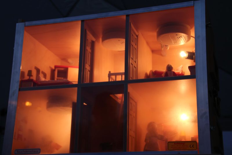 Aber auch das wie und wo Rauchmelder angebracht werden konnten durch Prospekte und einem persönlichen Gespräch erläutert werden. Anschaulich wurde durch ein Rauchhaus-Modell die Funktionsweise eines Rauchmelders dargestellt.