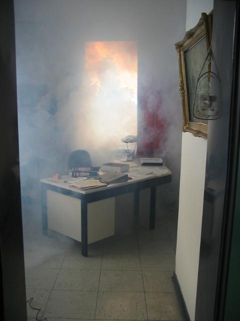 Beim Eintreffen der ersten Kräfte drang dichter Qualm aus dem Büro des Schulleiters. Nach erster Lageerkundung stand fest, dass alle Kinder samt Lehrkräften das Gebäude unverletzt verlassen konnten und sich auf dem Sammelplatz eingefunden hatten. Unter schweren Atemschutz ging ein Trupp zur Brandbekämpfung in das Gebäude vor. Schnell konnte der Brandherd ausgemacht werden und kontrolliert abgelöscht werden.