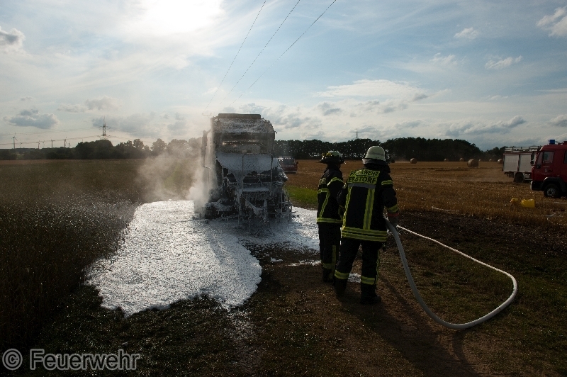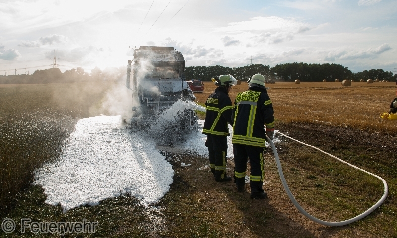 Eine brennende Strohpresse sorgte am frühen Donnerstagabend (23.07.2015) für einen Einsatz von Feuerwehr und Polizei. Auf einem Feld bei Oetzfelde geriet das landwirtschaftliche Gerät in Flammen.