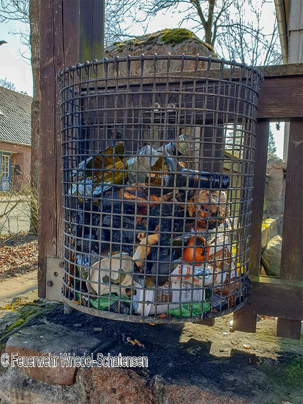 Ein brennender Mülleimer gab anlaß zur Alarmierung.