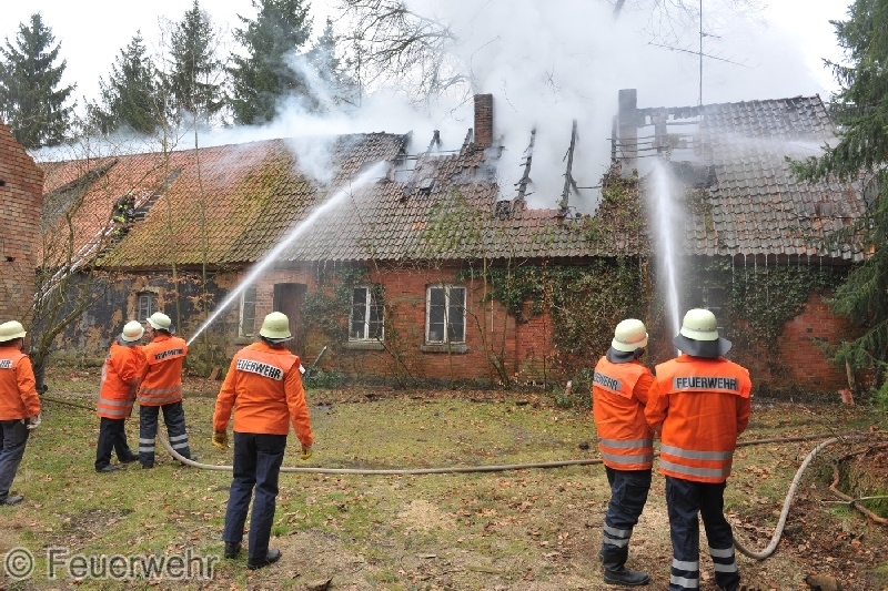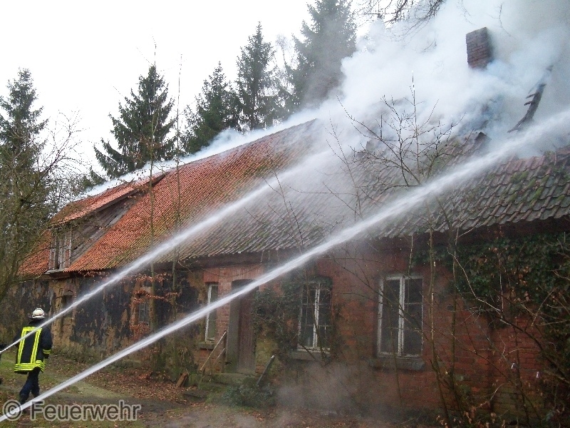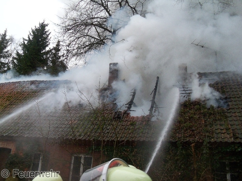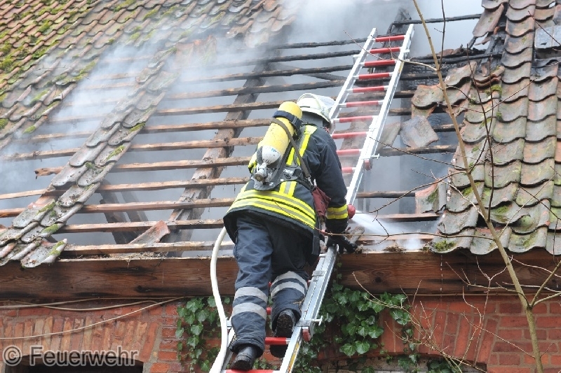 Passanten bemerkten das aus dem Dachstuhl des alten Bauernhauses Flammen loderten und alarmierten gegen 11.30 Uhr die Feuerwehr und Polizei.