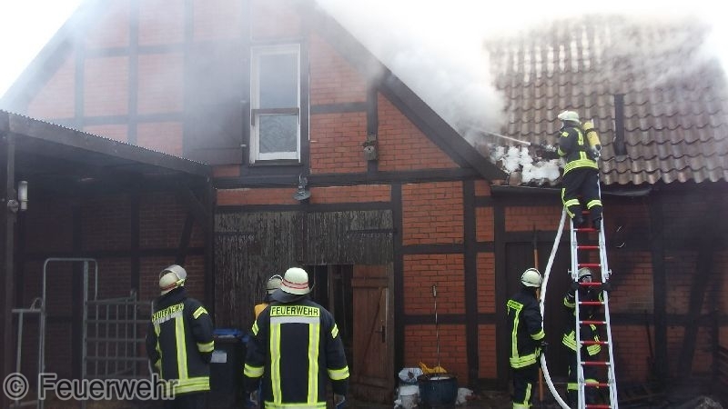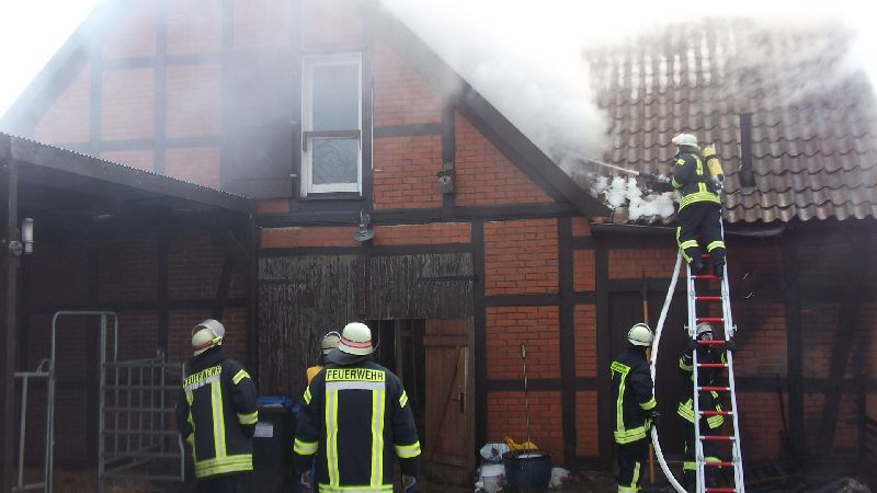 Ein Gebäudebrand in Bode war der Grund für die samstagmorgendliche Alarmierung. Die örtlich zuständige Ortswehr aus Bode hatte schon einen Löschangriff von Außen vorbereitet.