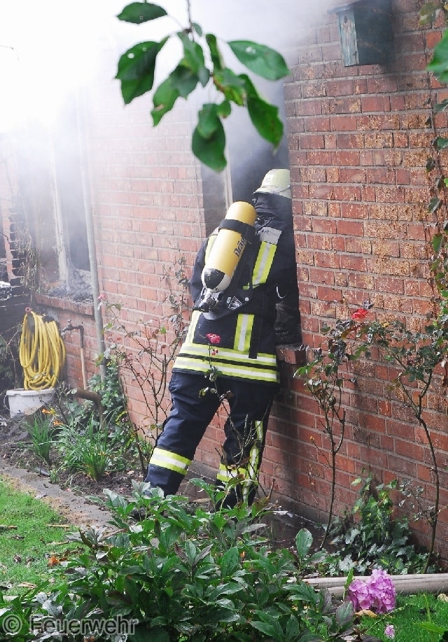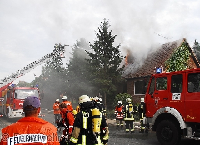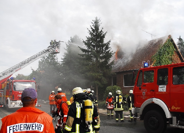 Wenige Minuten nach dem Alarm rückten die ersten Einsatzkräfte der Feuerwehren Ebstorf und Melzingen aus. Vor Ort schlugen auf der Rückseite des Gebäudes bereits Flammenzungen aus mehreren Zimmern. Personen wurden zu diesem Zeitpunkt nicht vermisst. Ein Trupp unter Atemschutz nahm die Innenbrandbekämpfung vor, die aber zeitweise durch die extreme Hitze abgebrochen werden musste. Zudem bestand noch die Gefahr einer Durchzündung, da sich das Feuer bereits in das ausgebaute Dachgeschoss durchgefressen hatte und dichter entzündlicher Qualm sich unter dem Dach sammelte.