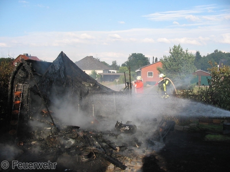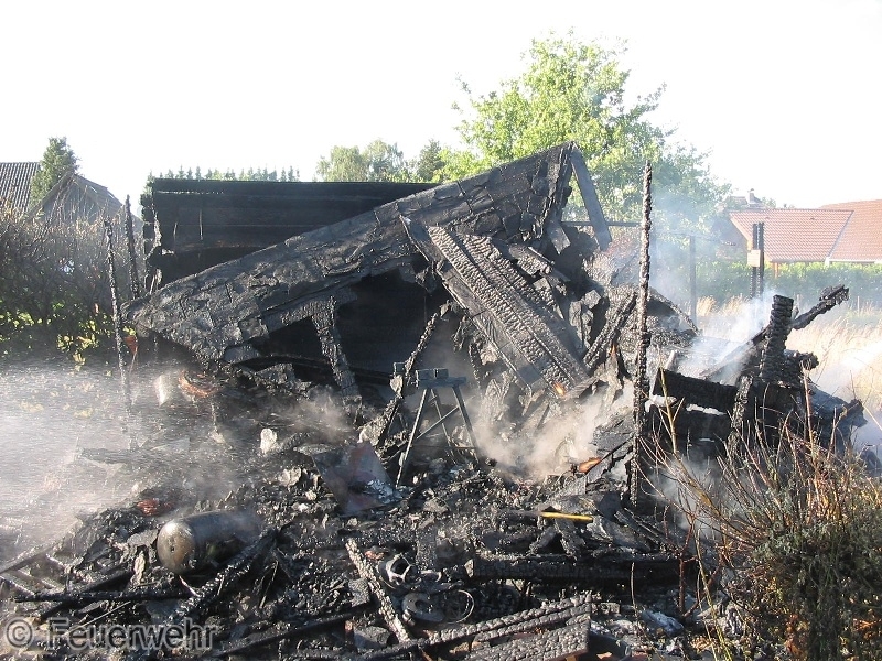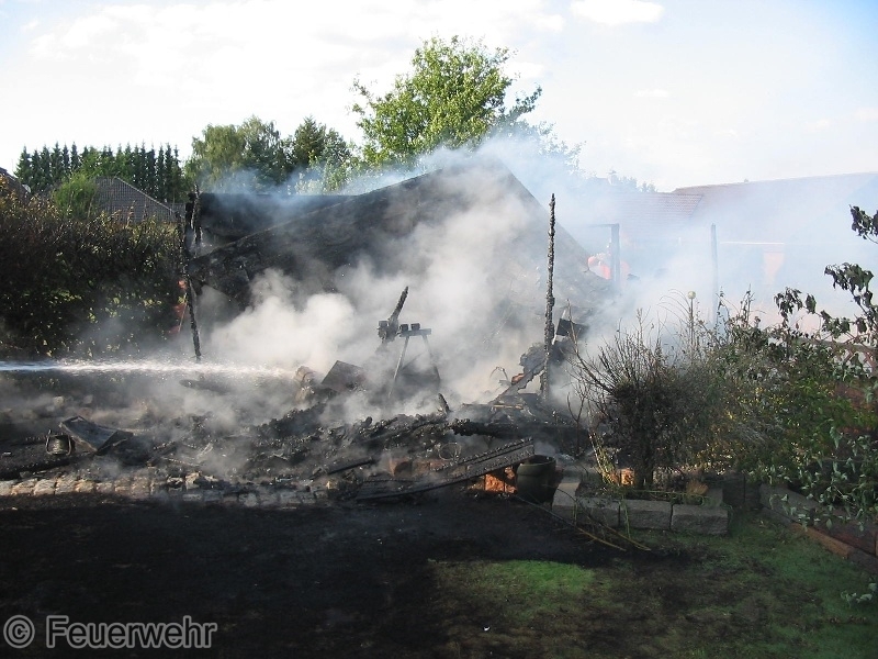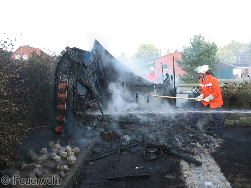 Eine Rettung des Geräteschuppen war nicht mehr möglich, es galt von daher eine weitere Ausbreitung auf andere Gebäude oder auf die Hecke zu verhindern.