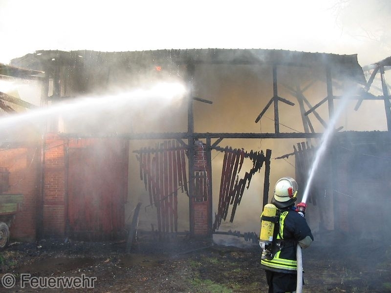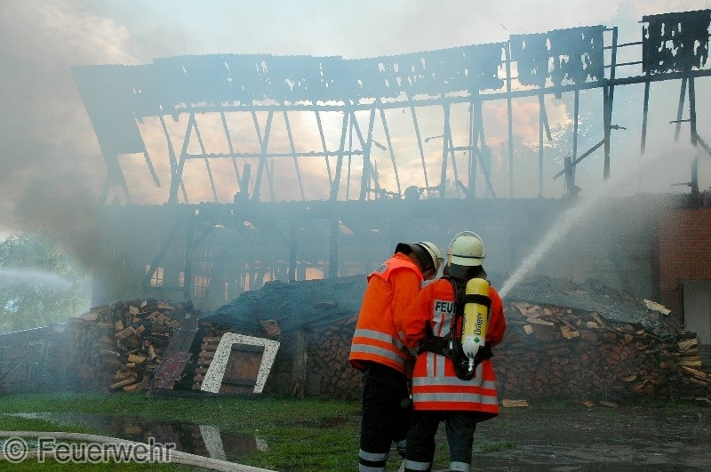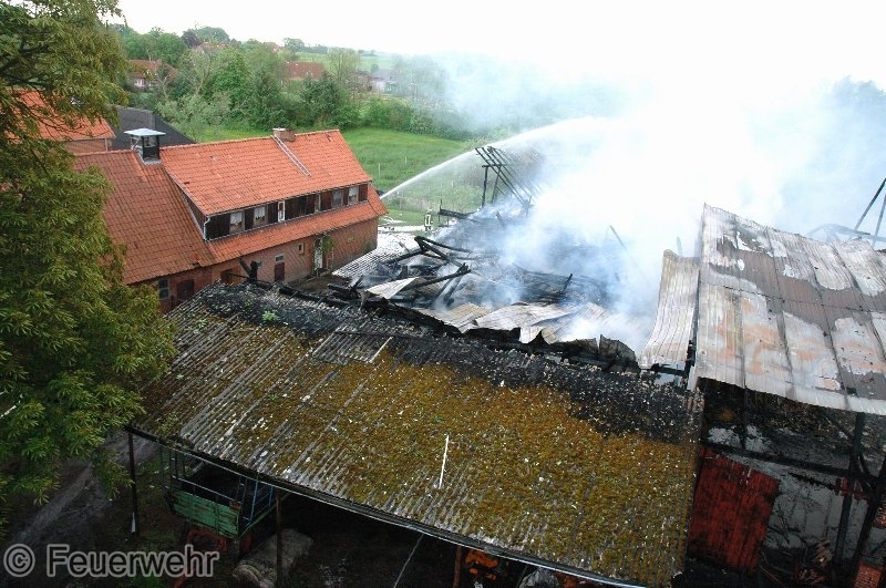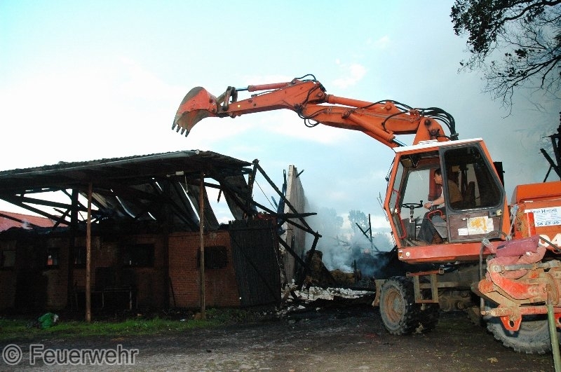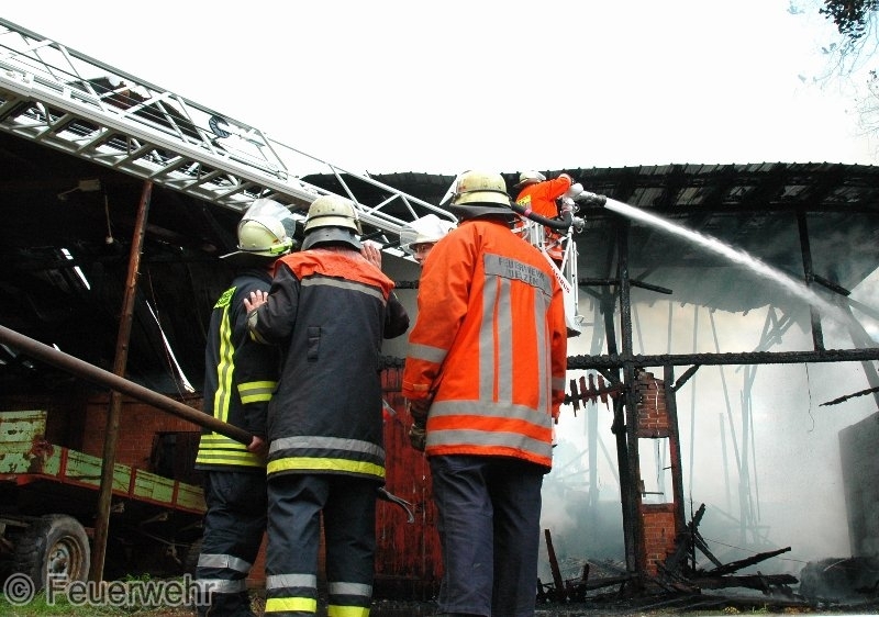 So wurden die Einsatzkräfte dem Großfeuer innerhalb von einer halben Stunde Herr. Für die Dauer der Löscharbeiten wurde die Ortsdurchfahrt Hanstedt I bis in den Abend voll gesperrt. Die Nachlöscharbeiten zogen sich bis in den nächsten Tag um 6:30h hin. Mit einem Bagger wurde zusätzlich Teile der niedergebrannten Scheune abgetragen um an versteckte Brandnester zu gelangen.