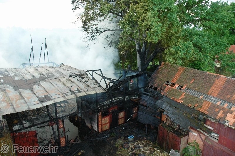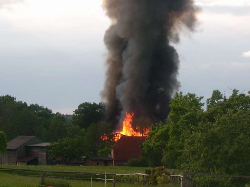 Eine Scheune stand im Vollbrand. Das Feuer drohte auf benachbarte Gebäude überzugreifen. In der Scheune selber lagerten große Mengen an Stroh, Kartoffeln, sowie zahlreiche landwirtschaftliche Geräte.