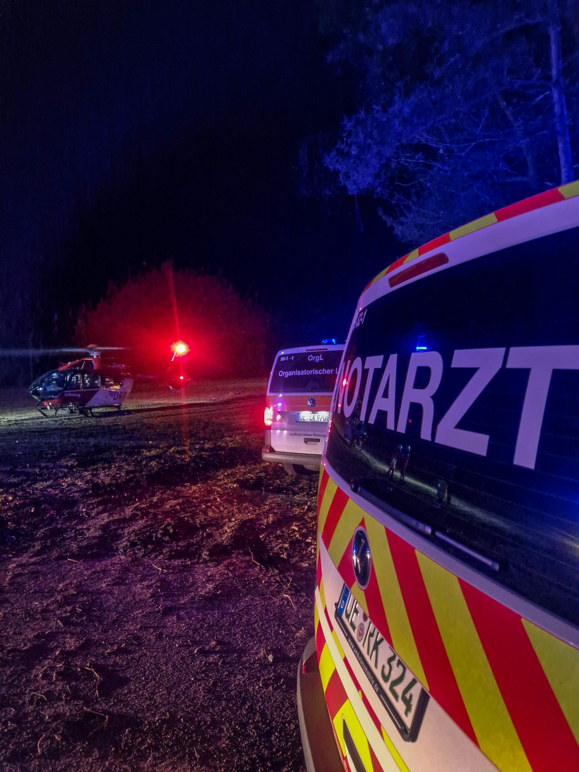 Für deren Landung richteten die Einsatzkräfte auf einem nahegelegenen Feld eine Landezone ein und leuchteten diese aus.