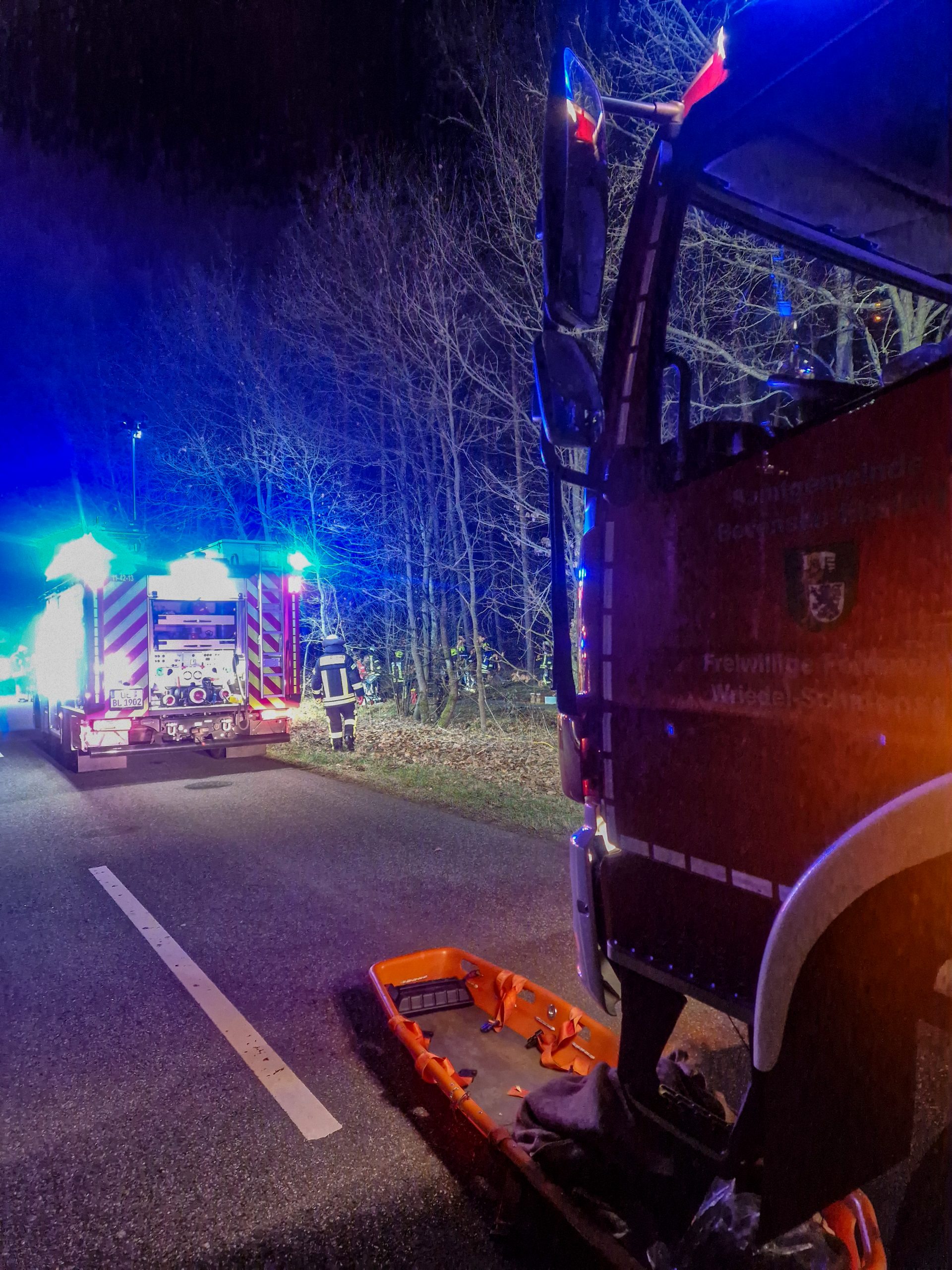 Im weiteren Verlauf des Einsatzes wurde die Unfallstelle für die polizeiliche Unfallaufnahme großräumig ausgeleuchtet.