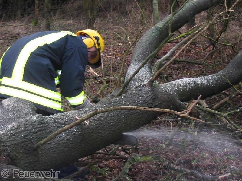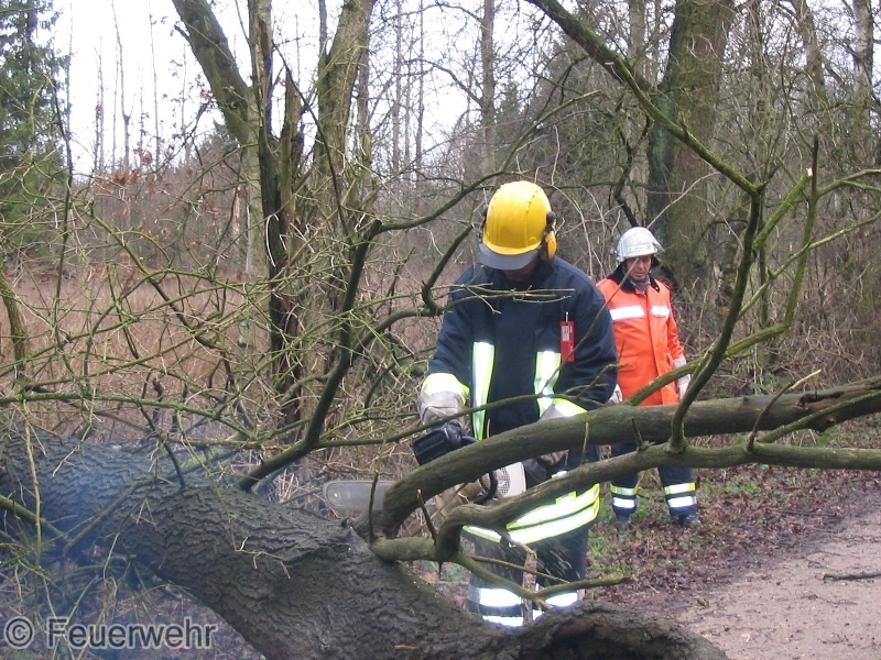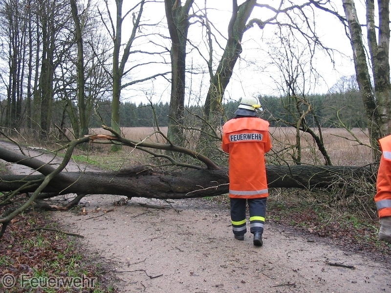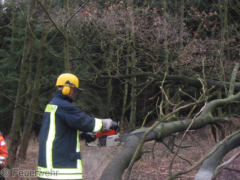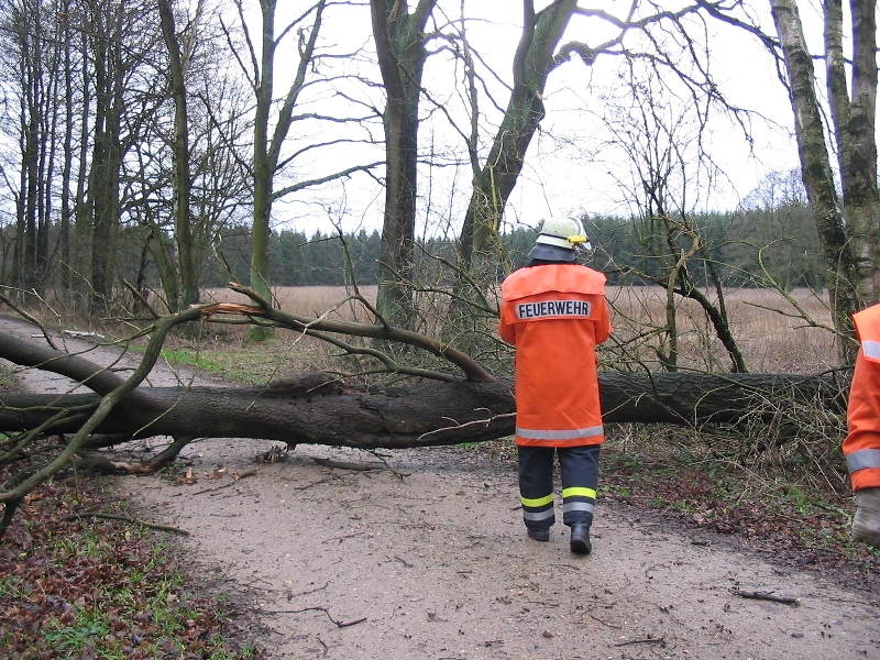 Das Sturmtief Kyrill hielt die Einsatzkräfte noch am folgenden Tag darauf auf Trab. Umgestürzte Bäume auf dem Gemeindeweg von Wriedel zur Boder Strasse wurden mit der Kettenmotorsäge zerschnitten und beseitigt.