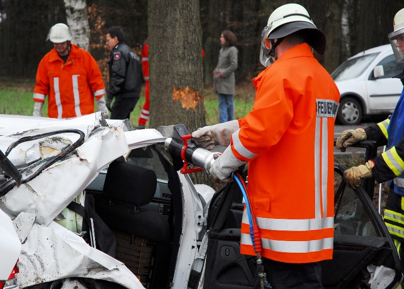Einsatzkräfte der Feuerwehr sicherten vor Ort den Brandschutz und unterstützten den Rettungsdienst. Später schafften sie eine Öffnung am Unfallfahrzeug um die Leiche bergen zu können.