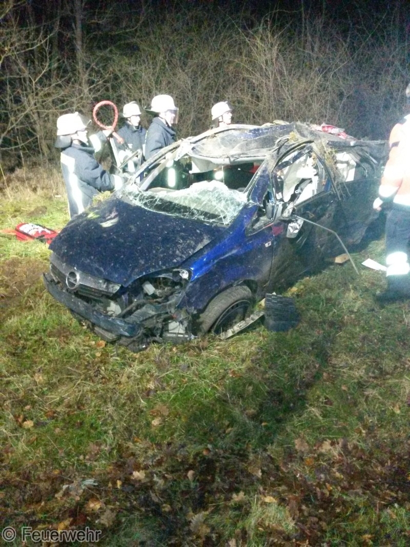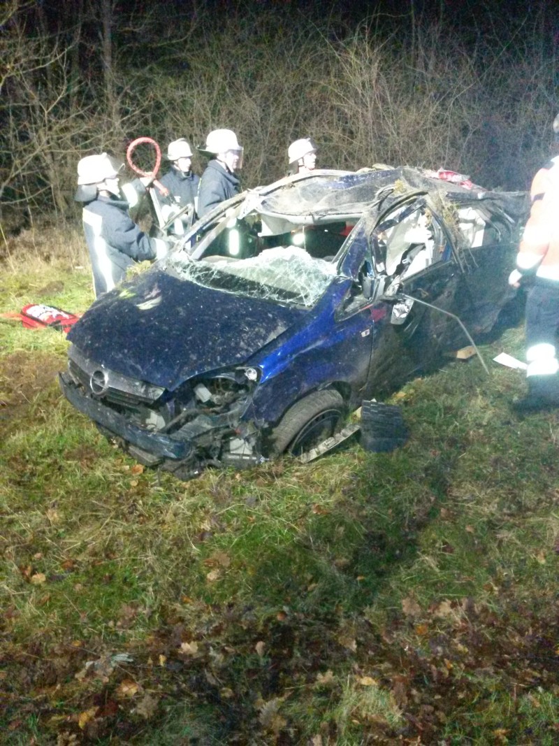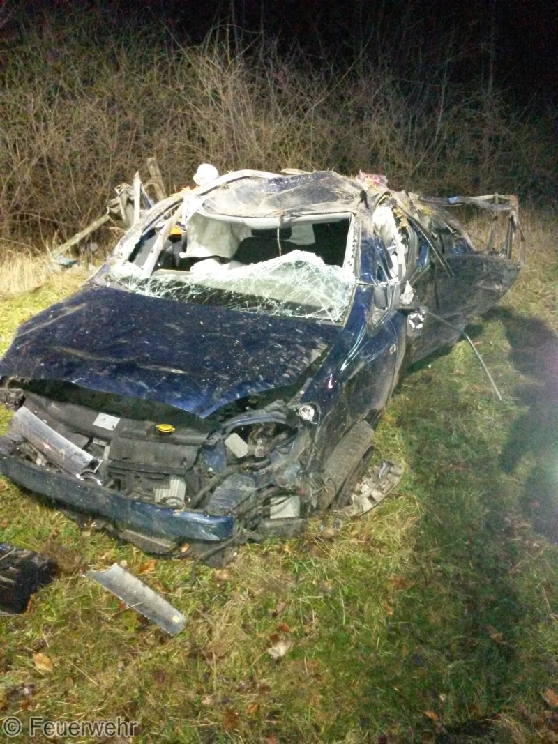 Dort ist ein PKW aus unbekannter Ursache in der leichten S-Kurze, Ortsausfahrt Lintzel kurz vor der B71, ins schleudern geraten und hat sich mehrfach überschlagen.