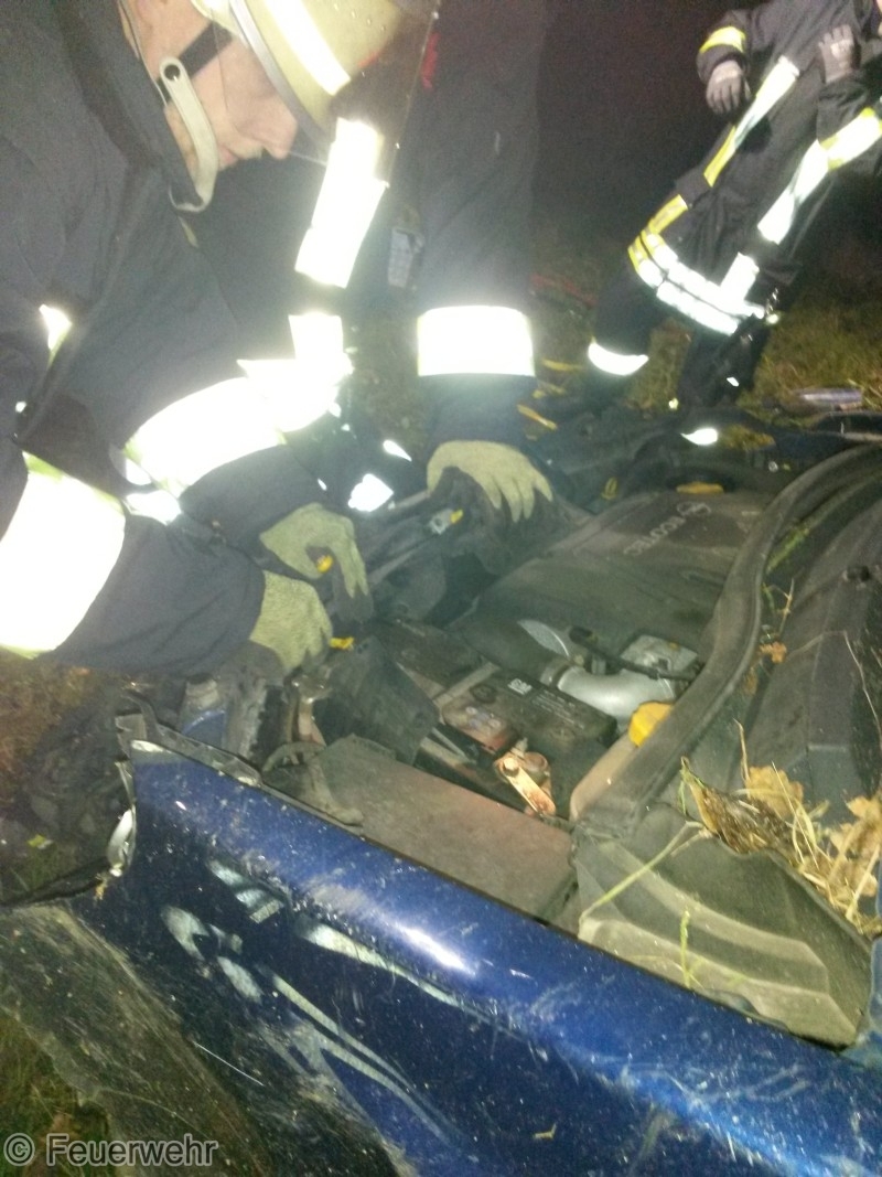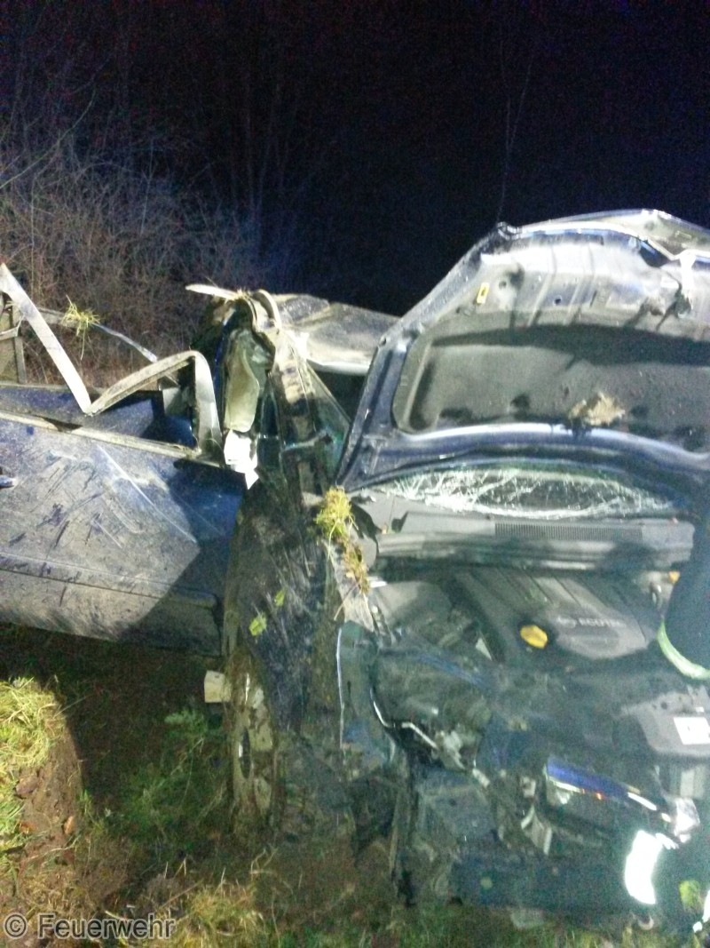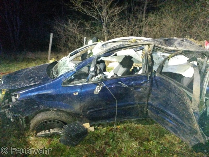 Der Fahrer des PKW wurde auf die Rücksitzbank des PKW geschleudert und wurde patientengerecht, sehr schwer verletzt, mit dem hydraulischen Rettungsgerät aus dem Fahrzeug gerettet und dem Rettungsdienst übergeben. Am Fahrzeug entstand Totalschaden.