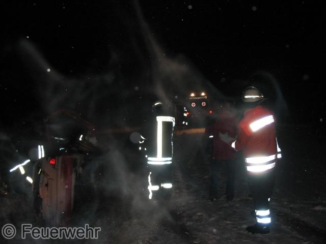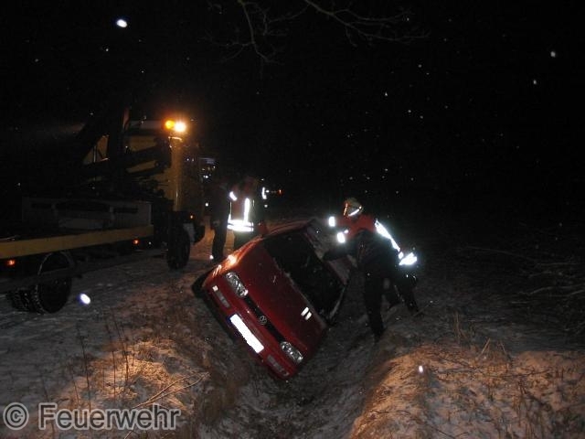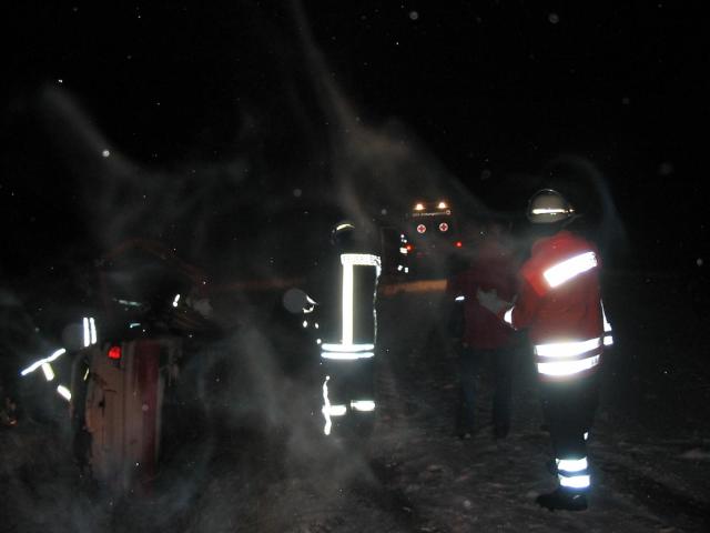 Gerade bei diesen Witterungsverhältnissen ist eine genaue Ortsangabe bei einem Notruf wichtig und kann Leben retten. Auf glatter Fahrbahn ist ein Fahrzeug von der Strasse abgekommen und in einem Graben gerutscht. Den Fahrzeuginsassen war glücklicherweise nichts passiert. Der Gemeindebrandmeister half den Fahrzeuginsassen beim Verlassen ihres Fahrzeuges. Das Fahrzeug selber befand sich aber in einer misslichen Lage, es war komplett in dem Graben gerutscht und lag nun aufrecht auf der Seite.