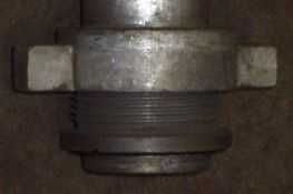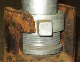 4. Den richtigen Sitz der Klauenmutter mit einem kurzen Blick prüfen, sie muß ganz nach unten geschraubt sein! Das Standrohr senkrecht auf den Hydrantenanschluß setzen und mit Drehungen nach rechts anschrauben. NIEMALS (außer beim Abbau) das Standrohr nach links drehen. Sollte es trotzdem mal nötig sein, Standrohr komplett entfernen, Klauenmutter wieder nach unten schrauben und neu ansetzen.