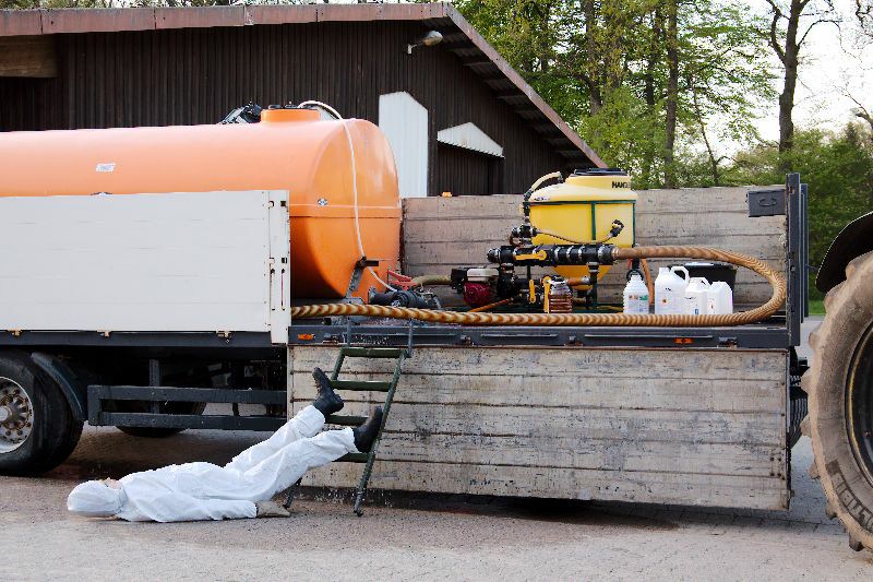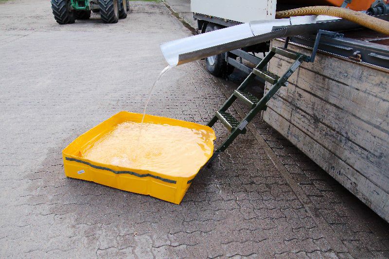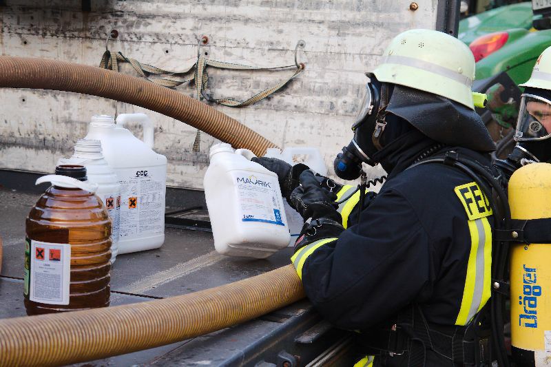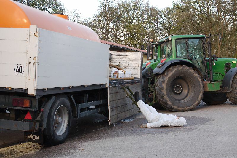 Dabei wurde eine Behälter mit Pflanzenschutzmitteln beschädigt und grosse Mengen liefen aus den Tankbehälter. Die Flüssigkeit drohte in die Regenkanalisation abzulaufen. Ein Mitarbeiter des Betriebes wurde bei diesem Unfall verletzt, er viel vom Hänger auf dem der Mischbehälter steht und blieb bewusstlos liegen, auch er wurde stark mit der Flüssigkeit kontaminiert.