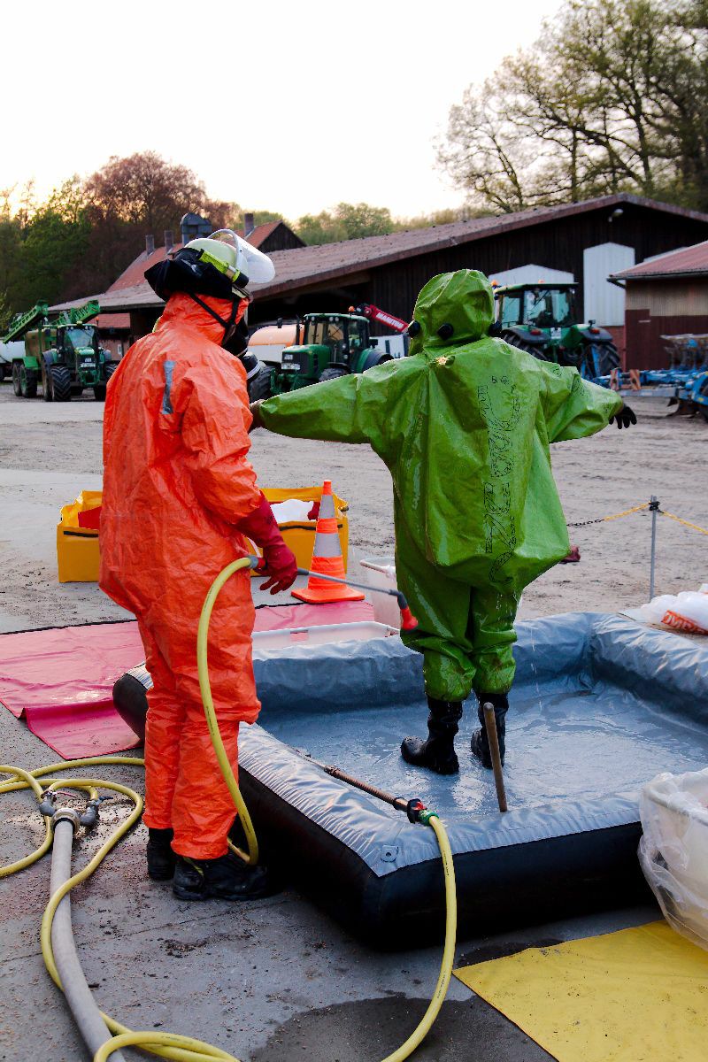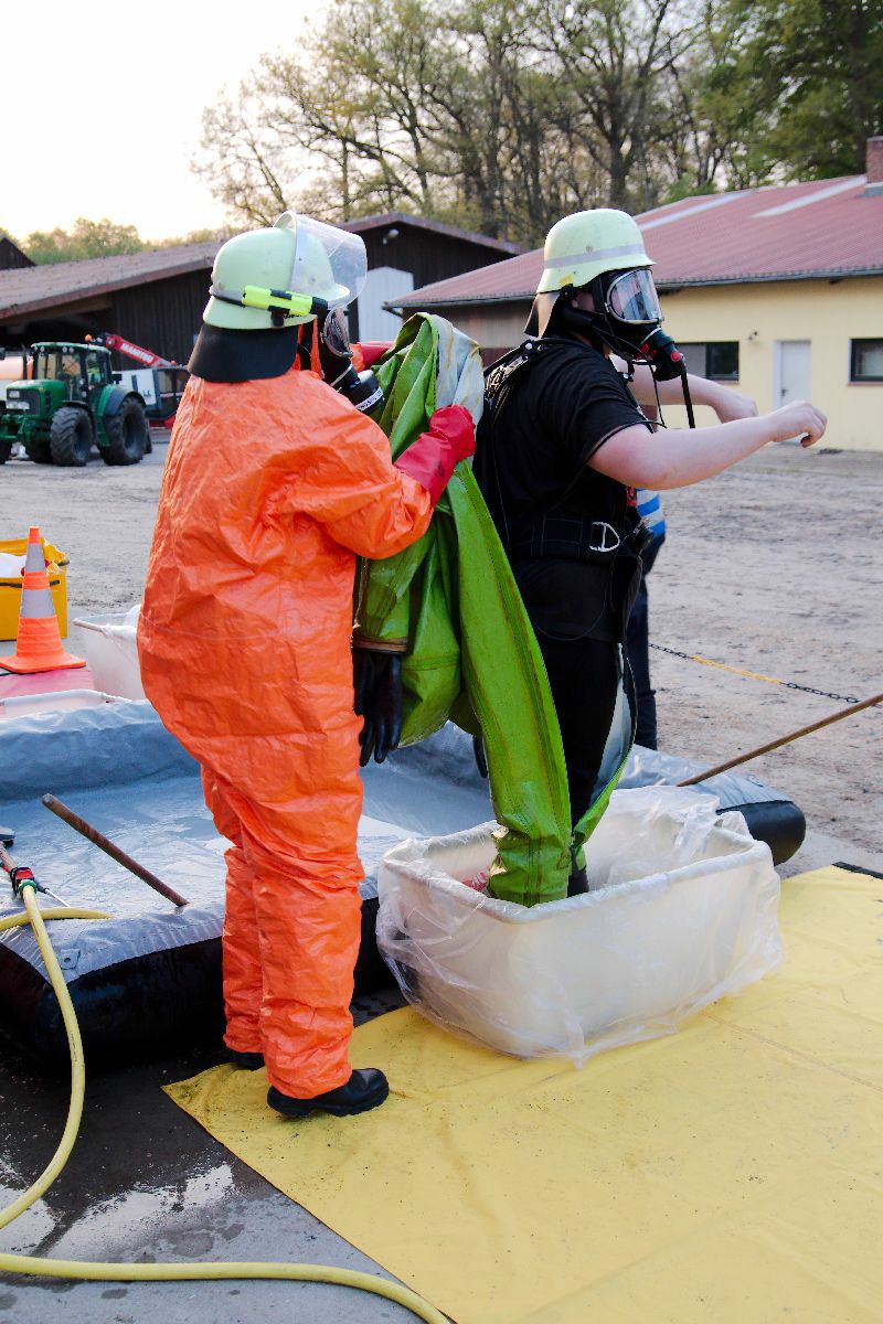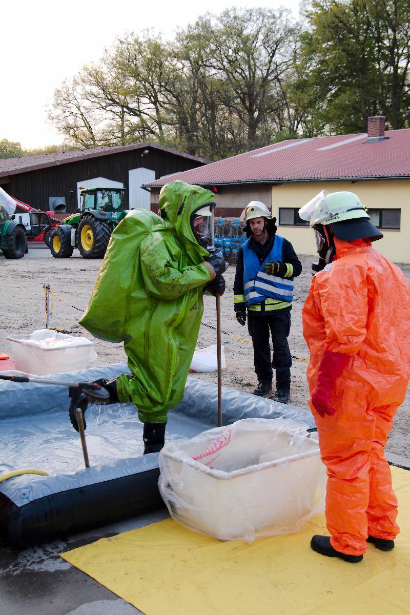 Der Gefahrgutzug Nord traf sich zu seiner ersten Übung in diesem Jahr in Wriedel. Die angenommene Lage war ein Unfall auf den Hof eines landwirtschaflichen Betriebes.