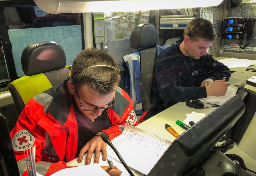 Ein Schwerpunkt lag hierbei auf der Zusammenarbeit der ELW Besatzungen von DRK und Feuerwehr vor Ort. Wie werden die Fahrzeuge aufgestellt? Wie können Ressourcen gemeinsam genutzt werden? Diesen und vielen anderen Fragen wurde nachgegangen und später mit allen Teilnehmern ausgewertet.
