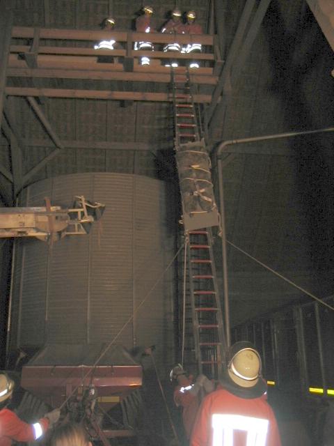 Ziel der Übung was es zum einem, die Gefahren an der Einsatzstelle zu erkennen und zum anderen Möglichkeiten und Wege der Höhenrettung auszuprobieren. In der Nachbesprechung wurde darauf hingewiesen das es bei entsprechender Ausrüstung (RW aus Munster) noch andere Möglichkeiten gibt den Verletzten aus dieser Höhe zu retten. Es seien da nur die Drehleiter und Geräte die nach dem Gleitreibungsprinzip funktionieren, genannt. Bei den Gefahren an der Einsatzstelle wurde nochmals darauf hingewiesen, gerade in landwirtschaftlich genutzten Gebäuden, besonders aufmerksam auf gefährliche Stoffe und Güter zu achten.