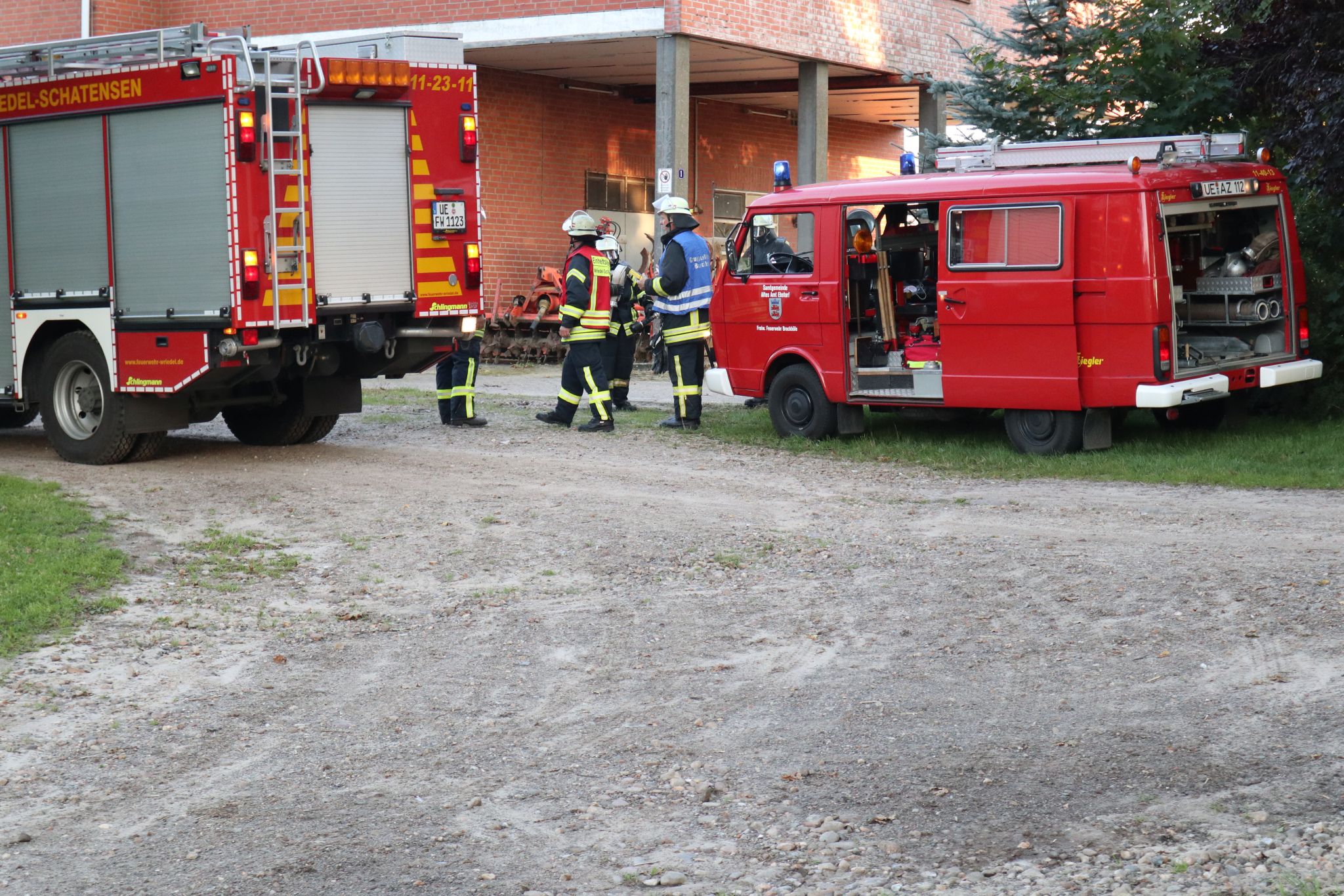 Die Lage für die ersteintreffenden Einsatzkräfte aus Brockhöfe war somit klar definiert – Menschenrettung. Die mitalarmierten Einsatzkräfte aus Wriedel trafen kurze Zeit später auch am Einsatzort ein und rüsteten sich zunächst für die Menschenrettung aus und bereiteten die Brandbekämpfung vor. Einsatzkräfte aus Brockhöfe stellten die Wasserversorgung für die wasserführenden Fahrzeug her.