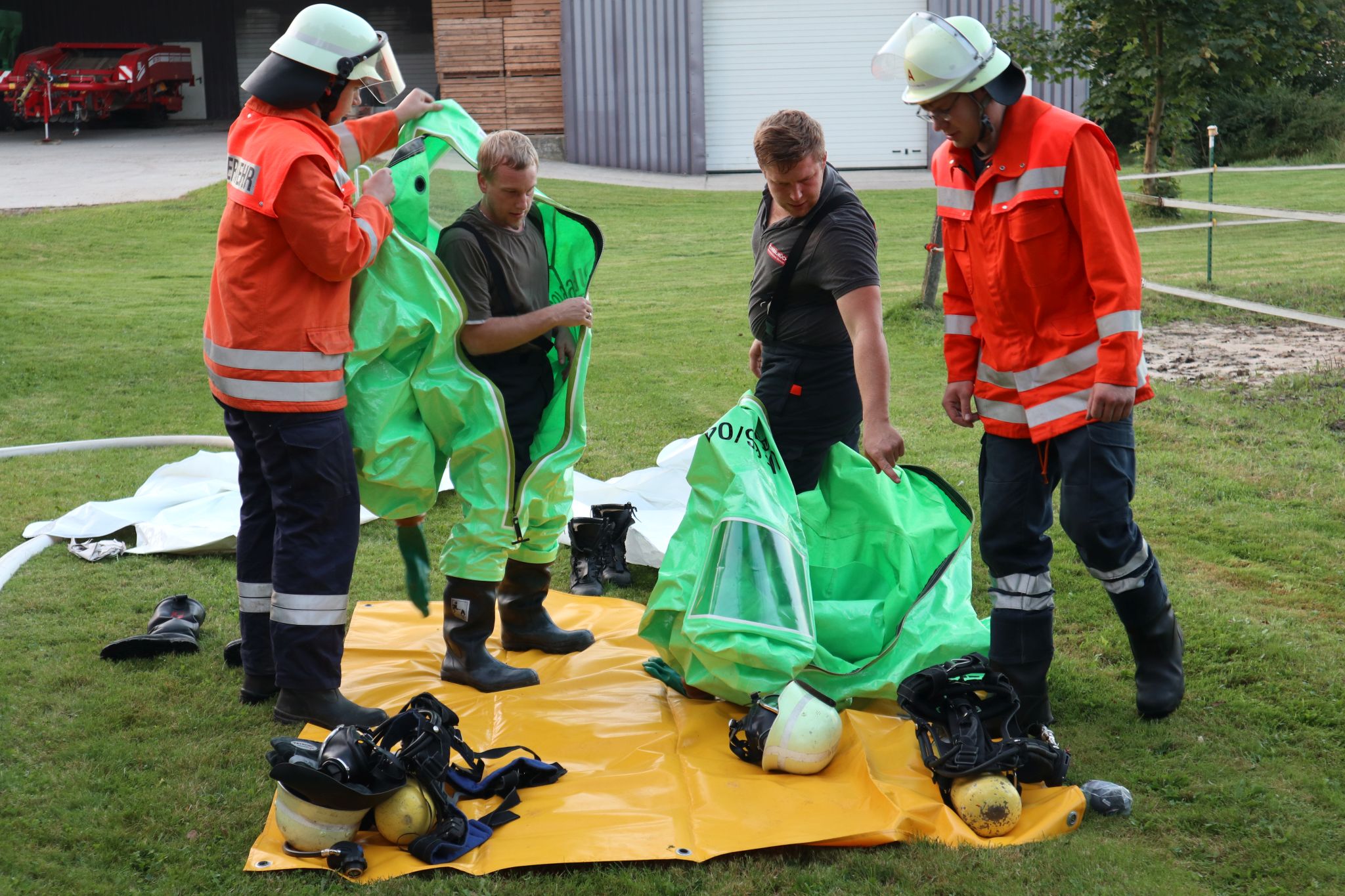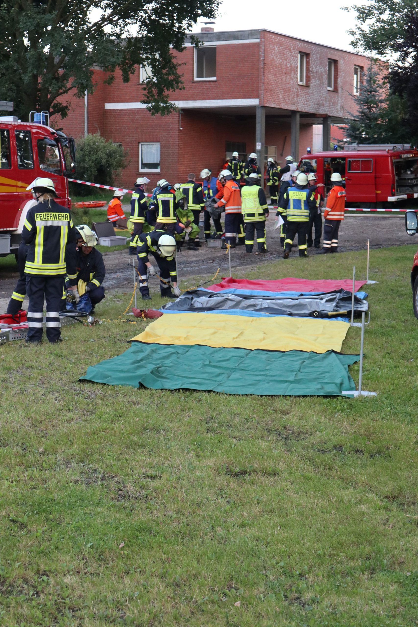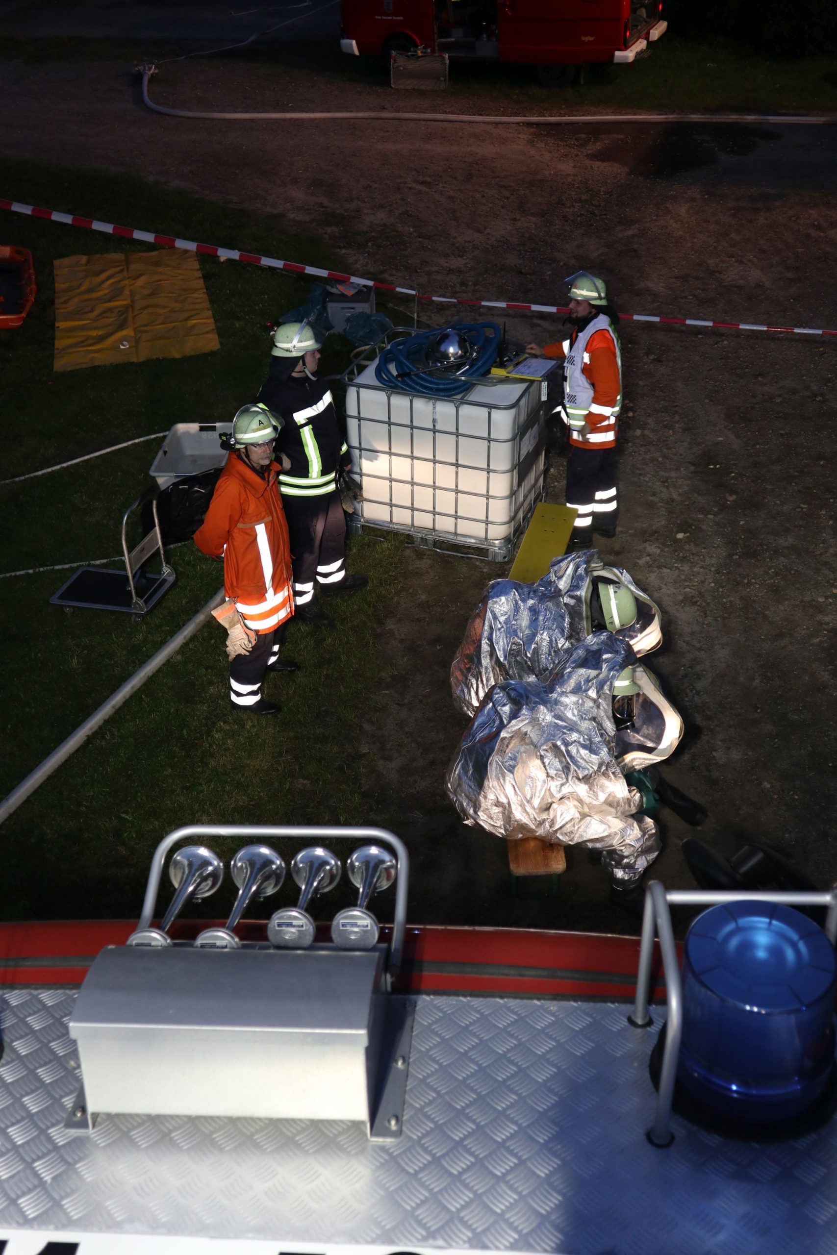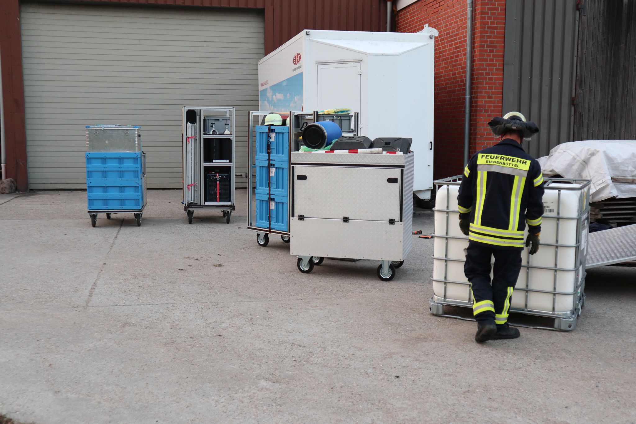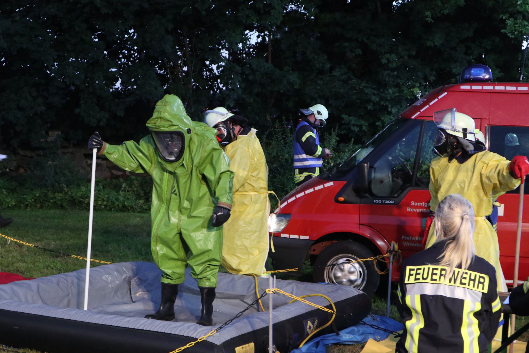 Der Gefahrgutzug Nord wird aus den Feuerwehren Bienenbüttel, Bad Bevensen, Ebstorf und Wriedel zusammengestellt. Die für einen Gefahrguteinsatz benötigten Komponenten wurden aufgebaut und bereitgestellt. Die ersten Trupps unter CSA (Chemikalien Schutz Anzug) konnten mit der Erkundung beginnen. Eine Vielzahl von giftigen, reizenden Stoffen mit unterschiedlichen UN Nummern wurde ermittelt.