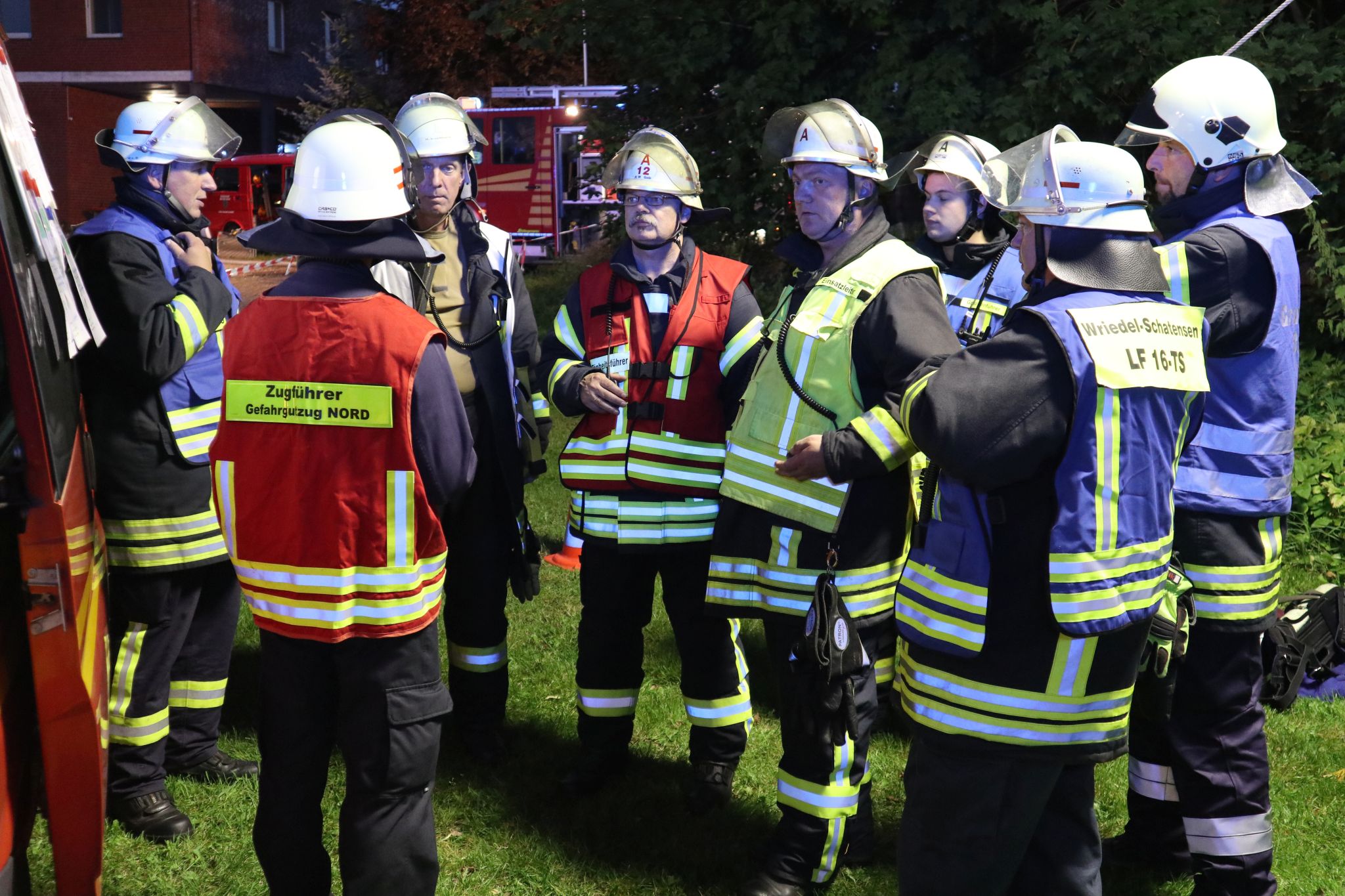 Schnell stellte sich heraus, dass diese Lage mit den Mitteln beider Wehren nicht zu bewältigen ist und es wurde der Gefahrgutzug Nord alarmiert. Da das HLF 20/30 aus Wriedel zum Gefahrgutzug Nord gehört wurde es diesem unterstellt.