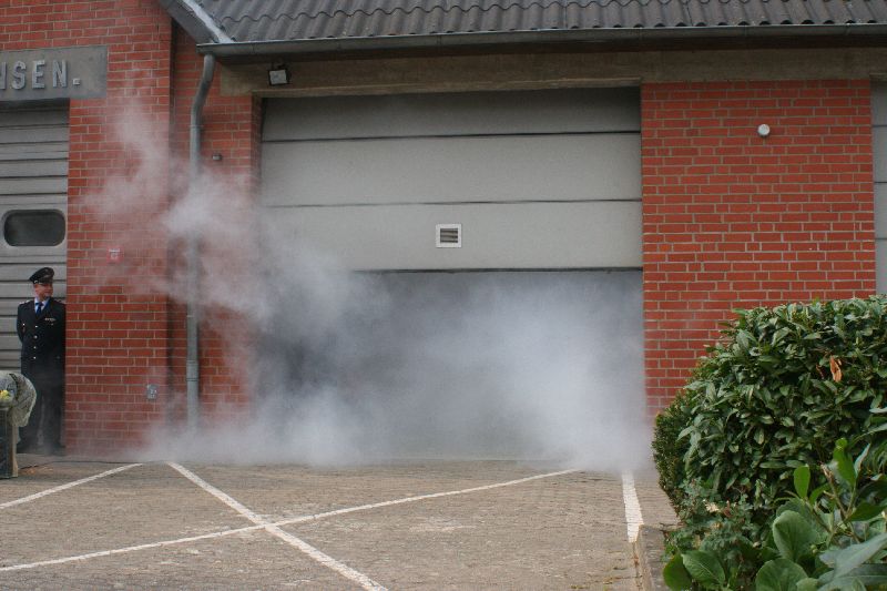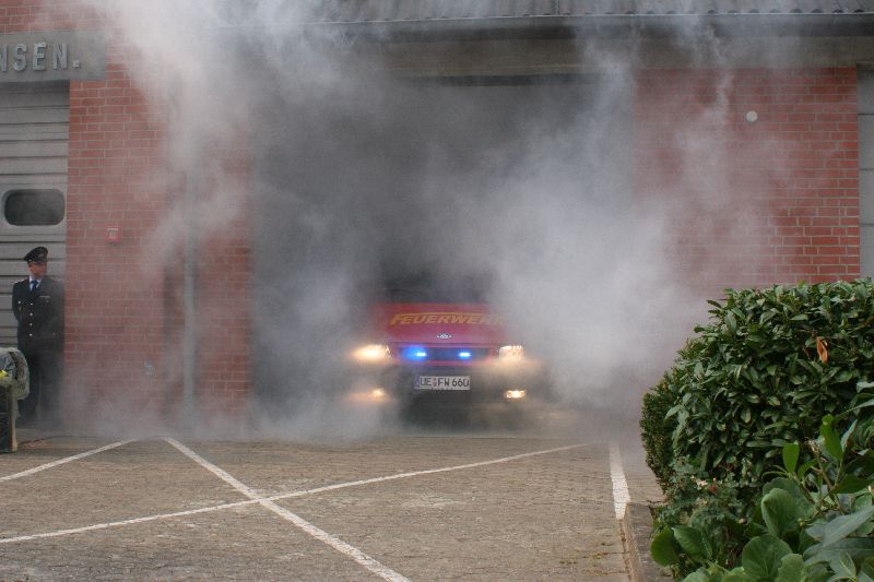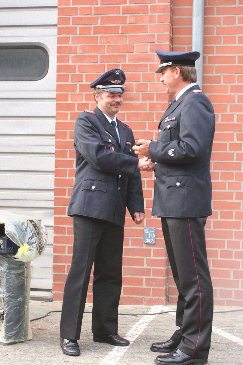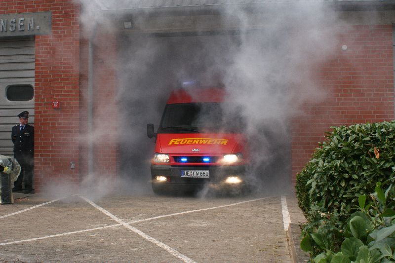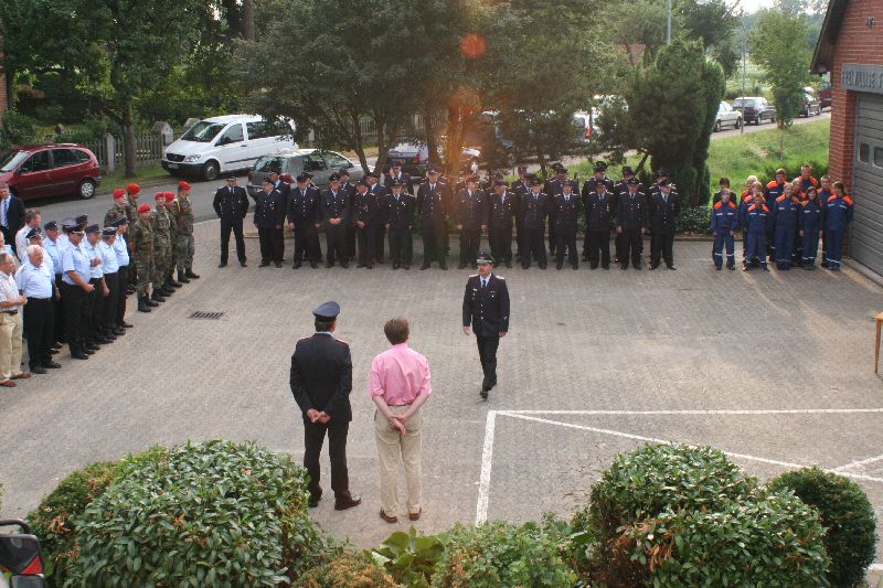 Vor den angetretenen Feuerwehrangehörigen und einer Abordnung der Patenkompanie, sowie Gästen aus anderen Wehren, der Samtgemeinde und Vertretern aus Rat und Gemeinde, übergab der Samtgemeindebürgermeister Herr Wendt den Fahrzeugschlüssel den Gemeindebrandmeister Hans Jürgen Cordes.