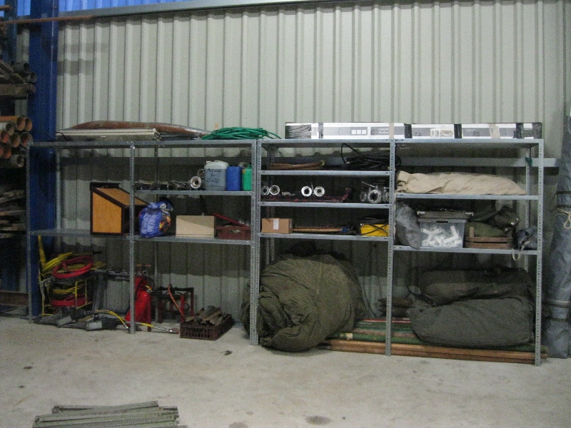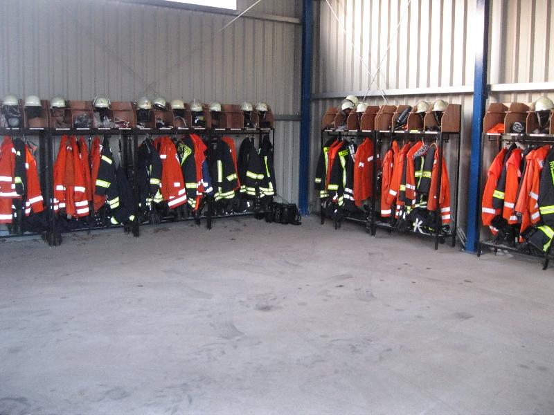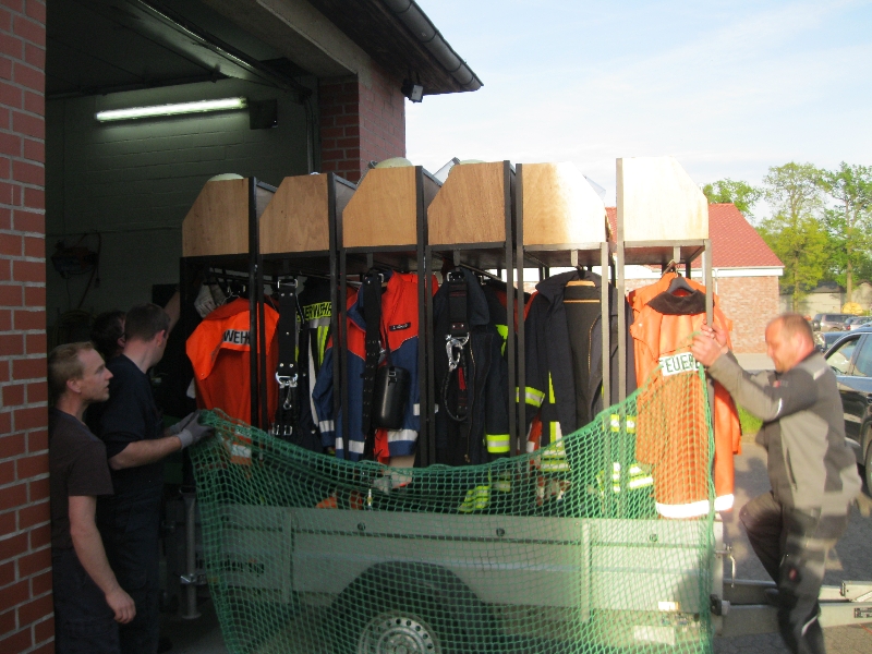 Es war uns aber möglich, auch mit einem neuen Schwerlast Regal, was wir von der FF Bad Bevensen erhielten, die Gerätschaften auch im vorübergehenden Feuerwehrhaus unterzubringen.